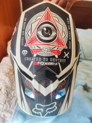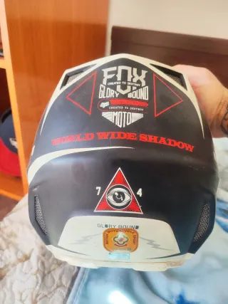 Casco de moto Fox Glory Bound. - Diseño World Wide Shadow. - Detalles gráficos con el logo de Fox. - Incluye pegatinas de British Motorcycle Sport y Glory Bound.