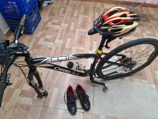Bicicleta Orbea en buen estado, lista para usar. Incluye casco y zapatillas. Lo único arreglar las ruedas de pinchazo porque hace 2 años que no se ha utilizado - Cuadro de bicicleta Orbea. - Casco de ciclismo. - Zapatillas de ciclismo. Número 42 como nuevas