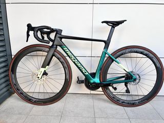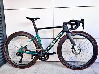 Bicicleta de carretera Megamo Pulse 15 en talla S con ruedas SSCAR de carbono. -Grupo 105 di2 12 velocidades. Cassete 11-34 y platos 52-36; bielas de 170mm. -Cuadro Megamo Pulse talla S, con guiado interno de cables. Tipo de carbono Aerolight. -Manillar integrado 400mm de ancho y 90 de potencia. -Tija aerodinámica de carbono. -Ruedas Sscar de carbono en 45mm de perfil, con cubiertas tope de gama Pirelli P-ZERO RACE en 30mm de ancho. Siempre bien cuidada, con apenas 4000km. Comprada en enero del año pasado en tienda oficial Megamo.