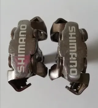 Un par de pedales automáticos SHIMANO para bicicletas, Modelo: PD-M520 MALAYSIA VIA, Sin calas. Están poco usados y casi no tienen marcas estáticas en la pintura tal y como se ve en las fotos. Estan en buenas condiciones y funcionan perfectamente.