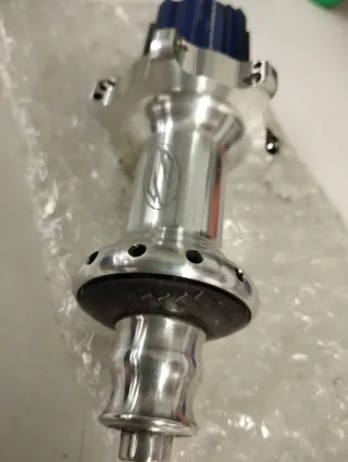 Buje Zipp 404 de aluminio. - Color plateado y azul. - Diseño con múltiples agujeros.