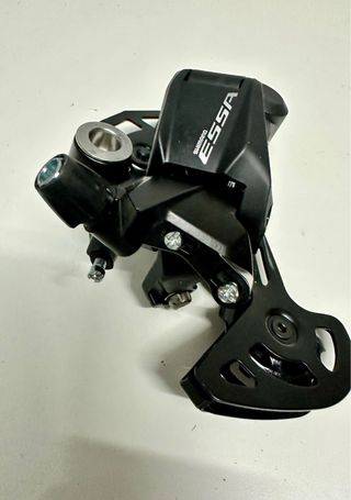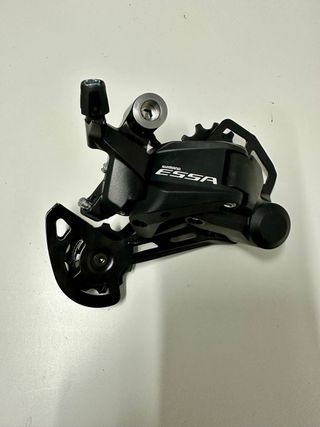 Desviador trasero de la marca Shimano, modelo ESSA. Pieza de ciclismo en color negro. Un modelo hecho para ser resistente. Ideal para bicis fixie, urbanas o mtb antiguas. - Marca: Shimano. - Modelo: ESSA. - 8 velocidades - Piñon máximo 40 dientes.