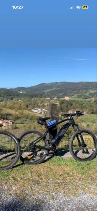 Bicicleta de montaña en color negro. Partiendo de una bici MTB de Decathlon, mejorada. - Cuadro de aluminio. - Ruedas de 27,5. - Suspensión delantera Suntour XCM. - Frenos de disco hidraulicos. - Transmision 2x8 - Bielas y desviador delantero Shimano GRX 400 En buen estado. Solo hace falta sustituir el rodamiento de la dirección (son 20 mins y 20 euros en un taller de bicis). Ideal para ciudad, senderos y montaña. Se envía en caja especial para enviar bicis que en si mismo ya tiene su valor. #bicicleta #rockrider #specialized #orbea #shimano #sram #trek