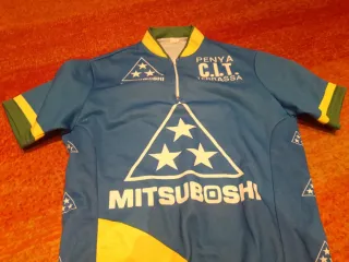 Maillot de ciclismo retro del club terrassa.talla 4 como m de hombre.retro con tejido toalla.axilas 48.largo 61cm.alguna bolilla