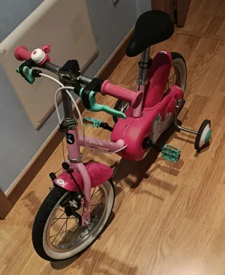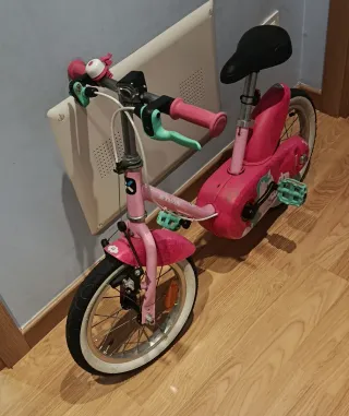 Bicicleta infantil Decathlon de 20 pulgadas, ideal para los más pequeños. - Color rosa vibrante. - Sillín y puños a juego. - Timbre - Portabotella Bicicleta Btwin Decathlon Mistigirl Original 500 20’. Para niños 6-9 años. Como se aprecia en las fotos está en perfecto estado. En 2025 tuvo una puesta a punto en estos talleres que vienen a los pueblos y no se ha vuelto a usar. El manillar de los cambios recién cambiado, se puso Decathlon en contacto porque habían salido con fallo y nos lo cambiaron.