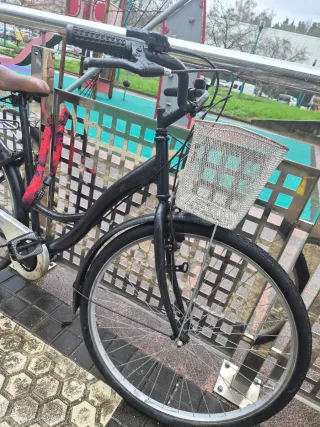 Bicicleta Btwin Original en color negro. Vedo bici se ha usado poco y estaba guardada en la terraza. Esta bien pero necesita limpieza y engrasar la cadena. - Cuadro de bicicleta. - Ruedas de bicicleta. - Sillín de bicicleta. - Manillar de bicicleta.