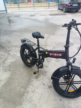 Bicicleta eléctrica con pantalla digital. En perfecto estado, básicamente como nueva. Poco uso. Cuenta con un motor de 250 W (limitado, pero puede deslimitarse a 750 W) y una batería de 48 V 13 Ah. El cuadro es de aleación de aluminio y se pliega fácilmente para su transporte. Utiliza neumáticos gruesos Chaoyang de 20 x 4 pulgadas, adecuados para diversos terrenos. Incluye suspensión delantera, frenos de disco mecánicos y cambios Shimano de 7 velocidades.