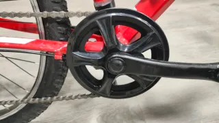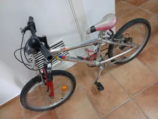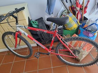 Bicicleta Orbea mx 24 xc en color rojo. Ideal para disfrutar del aire libre. Para niños de 6 a 9 años - Cuadro de aluminio. - Suspensión delantera. - Cambio Shimano de 8 velocidades. -Pata cabra y portabidon de regalo - Buen estado general Solo tiene alguna marca típica del uso como la del sillin
