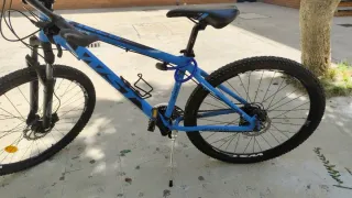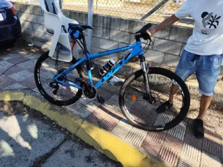 Bicicleta de montaña en color azul. - Cuadro de aluminio. - Frenos de disco. - Ruedas de 27 pulgadas. - Suspensión delantera. - Incluye candado azul.