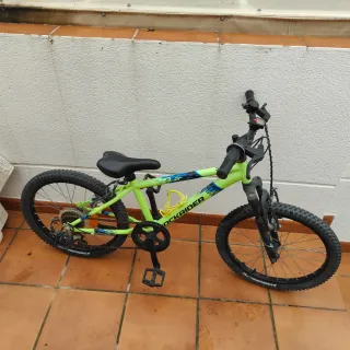 Bicicleta infantil Rockrider de 20 pulgadas. - Cuadro blanco con detalles azules. - Ruedas todoterreno. - Timbre azul. - luz - portabotella - pata de cabra En perfecto estado , se le ha quedado pequeña