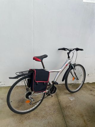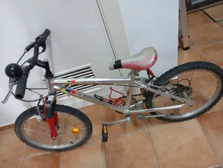 Bicicleta de montaña en color plateado, ideal para paseos y aventuras.