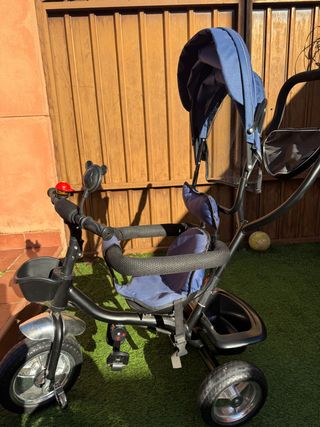 Triciclo evolutivo para niños, ideal para acompañar el crecimiento. - Estructura resistente. - Asiento cómodo. - Capota protectora. - Cesta de almacenamiento.