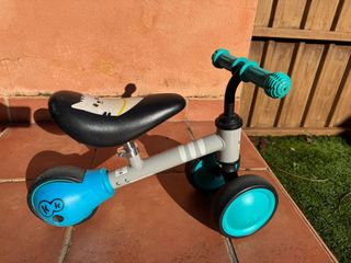 Triciclo multifunción de la marca Kikkaboo, ideal para los más pequeños. - Asiento acolchado y reclinable. - Barra de empuje desmontable. - Reposapiés plegable. - Capota para el sol.