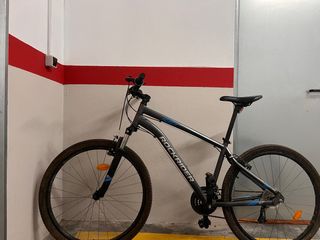 Bicicleta de montaña Rockrider con ruedas de 27.5 pulgadas. Ideal para disfrutar de rutas y caminos. - Cuadro de aluminio. - Suspensión delantera. - Frenos de disco. - Cambio Shimano.