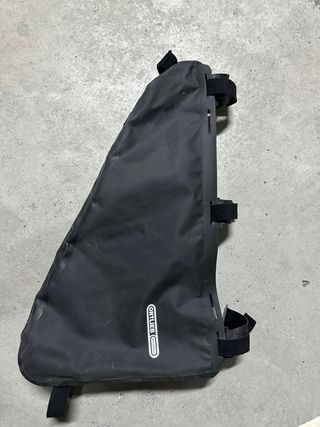 Bolsa de cuadro Ortlieb de 6 litros en buen estado. Ideal para cicloturismo y bikepacking. - Color negro. - Cremallera impermeable. - Cintas de sujeción ajustables.