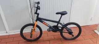 Bicicleta BMX en color negro con detalles naranjas. - Cuadro robusto. - Ruedas de 20 pulgadas. - Frenos. - Pedales.