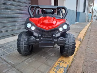 Quad eléctrico para niños con un diseño deportivo y llamativo. Por estrenar, se compró y venía chico para el niño de 5 años - Color principal negro con detalles en blanco. - Ruedas todoterreno. - Luces delanteras.