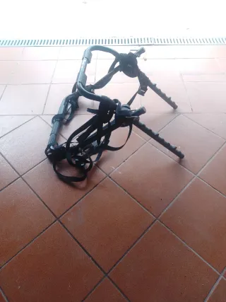 Portabicicletas de coche con correas de sujeción. - Estructura metálica. - Correas negras de sujeción.