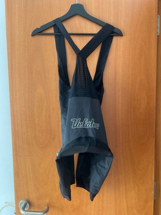 Culote de ciclismo Velotec negro con tirantes. - Tirantes cruzados en la espalda. - Tejido de malla en la zona superior. - Logos blancos en las perneras.