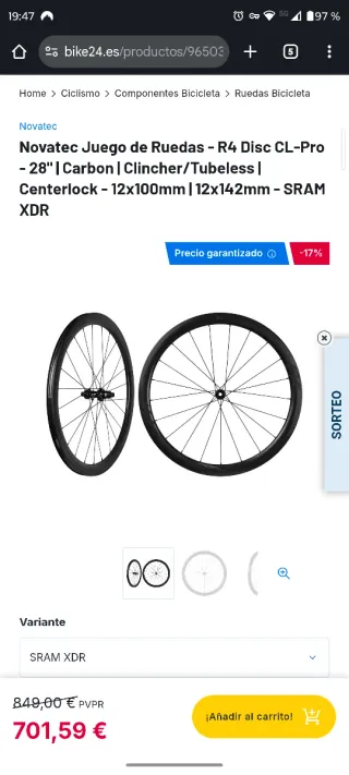 Juego de ruedas de carbono Novatec R4 para bicicleta de carretera. - Perfil de llanta de 700c - Fabricadas en carbono. - Núcleo Shimano HG - 45mm de perfil