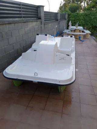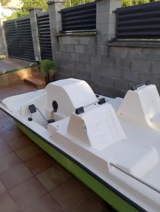 Patín acuático de dos plazas, ideal para disfrutar en el agua. Su diseño es ligero y fácil de manejar. - Color blanco y verde. - Construcción robusta.