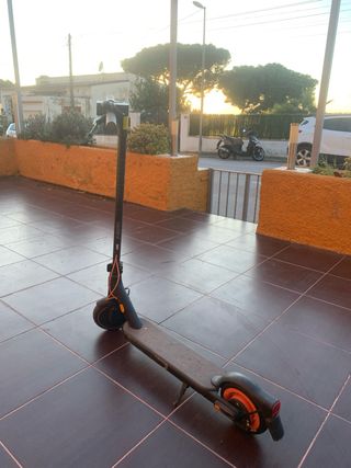 Patinete eléctrico Xiaomi en color negro. Ideal para desplazamientos urbanos. - Diseño plegable. - Ruedas con detalles naranjas. - Manillar ajustable. No ago invios Todo funciona el patinete