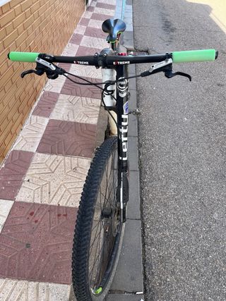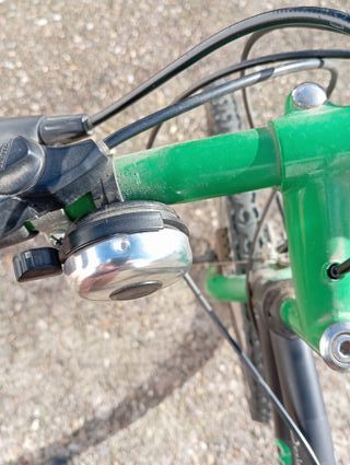 Bicicleta de montaña en color verde. Venta en persona. - Manillar con puños y timbre. - Frenos. - Cuadro de bicicleta.