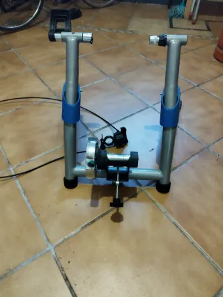 Rodillo para entrenamiento de bicicletas. Permite ejercitarse en interiores. - Estructura metálica. - Soportes para el eje de la bicicleta. - Resistencia ajustable.