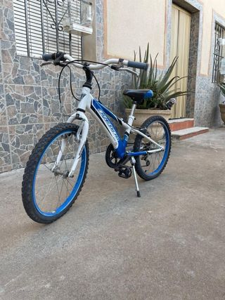 Bicicleta infantil de la marca Oregon, ideal para los más pequeños. Diseñada para ofrecer diversión y seguridad en cada paseo. - Cuadro de color blanco con detalles en azul. - Ruedas de 20 pulgadas con llantas azules. - Sillín y puños en color azul. -poco uso