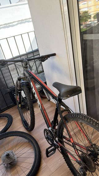 Bicicleta de montaña en color Rojo, apenas se ha usado muy nueva - Cuadro de aluminio. - Frenos de disco. - Suspensión delantera. - Ruedas de 27.5 pulgadas.