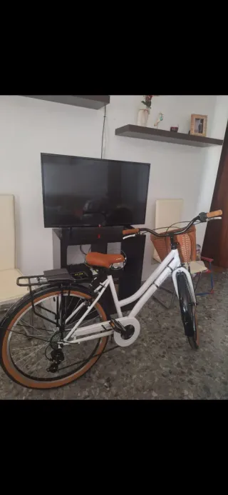 Bicicleta de mujer de la marca JL-Wenti que puede pasar por nueva.Solo usada un par de horas en el patio de la casa el día de Reyes,se puede apreciar en las ruedas.La niña no aprendió a montar en bici y ahora se le ha quedao pequeña.Le añadimos la funda de sillín, que tambien es nueva.Posibilidad de añadirle casco de niño/a siin usar.