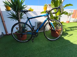 Bicicleta de carretera BH Volan, ideal para entrenamientos y rutas, con cambios Shimano 105, cubiertas y pedales nuevos y buen estado general. Para 1,75 metros de altura. - Cuadro de aluminio. - Ruedas de 700c. - Frenos de disco. - Portabidón incluido.