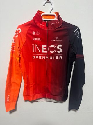 Chaqueta de ciclismo del equipo Ineos Grenadiers Hyder Gobik con acabado especial de las mangas hecho exclusivamente para corredores del equipo sin costuras Peso: 265 g (M) Temperatura de Uso: 6- 14 ºC Fitting: PERFECT FIT - Diseño degradado en rojo y negro. - Mangas largas. - Cuello alto. - Talla S rapha assos specialized sworks orbea cannondale trek castelli santini giant bianchi shimano sram oakley gobik gabba sportful giordana etxeondo sidi poc kask giro bianchi nalini lotto jumbo deceuninck alpecin kalas movistar euskaltel met UAE pogacar giro abus met ciclismo alpecin canyon remco sram shimano red bull