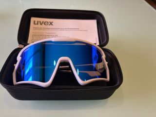 Gafas deportivas Uvex con lentes de espejo azules y montura blanca. Incluye funda protectora. - Lentes con acabado espejo azul. - Montura blanca. - Funda rígida para protección. Gobik,Garmin,edge,fénix,OAKLEY,velo kato,hypercraft,sutro,rapha,maap,lite.polar,santo,530,540,550,820,830,840,850,1030,1050,1040,MTb,carretera,.