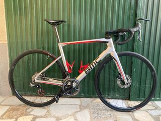 Bicicleta BMC cuadro Roadmachine 01 el más alto de su gama - Cuadro y horquilla de carbono en talla 54, yo mido 175cm - Frenos de disco hidráulicos Shimano - Transmisión durace de 11v - Ruedas fulcrum nuevas - cubiertas nuevas - cinta manillar nueva - biela izquierda ultegra con pontenciometro - soporte para garmin - recién revisada y preparada para rodar - cassette 11/28 y platos 53/39 - pedales look