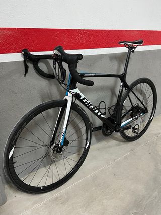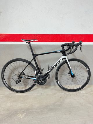Giant TCR Advanced. Talla M/L (Yo mido 1,78) • Cuadro de carbono. • Montaje Shimano 105. • Frenos de disco hidráulicos. • Cubiertas Rubino Pro, tubelizadas. • Pedales originales Giant. • Sillín Giant. • Ejes pasantes rápidos. • Llantas PR2. Paso más fotos y vídeos al que esté interesado, se puede ver y probar sin compromiso.