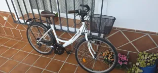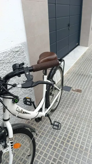 Bicicleta de paseo City40 en color blanco, casi nueva. Ideal para desplazamientos urbanos. - Cuadro de bicicleta de paseo. - Sillín marrón. - Puños marrones. - Timbre negro.