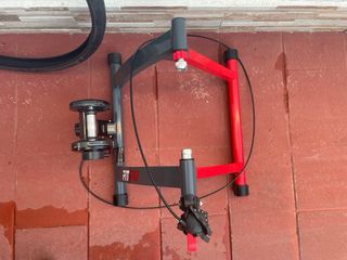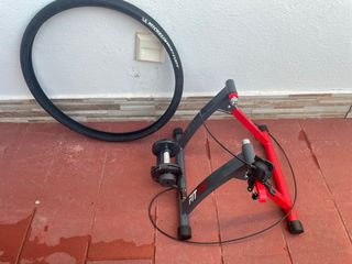 Rodillo Entrenamiento Bicicleta HOMCOM 54.5x47.2x39.1 cm - Estructura metálica gris y roja. - Incluye rodillo de resistencia. - Incluye rueda lisa y cámara Michelin
