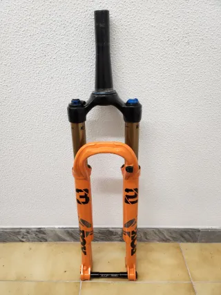 Horquilla Fox 32 para bicicletas de 29 pulgadas. - Modelo Float kashima 44mm de offset - Color naranja. - Tubo cortado a 15 cm - Incluye eje Boost kabolt. -Bloquea al pulsar - Mantenimiento recién hecho sin uso - Marcas típicas en las botellas del monte -Barra suspension perfectas