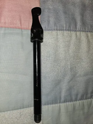 Eje pasante para bicicleta marca FOX. - Color negro. - Mecanismo de cierre rápido. Es de 15 x 110 Axle.
