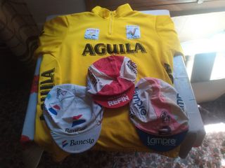 Maillot amarillo y tres gorras de la 50 edición de la Vuelta Ciclista a España , 1995. mi tlf es 606206624