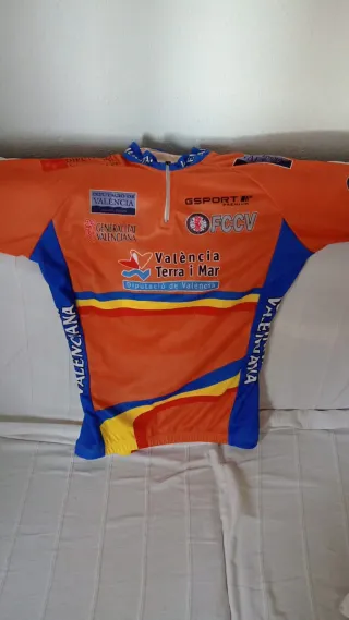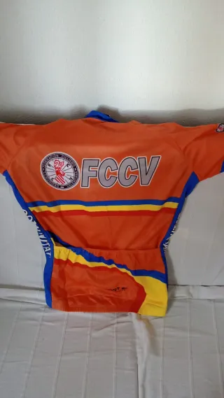 Maillot de ciclismo de la Selección Comunitat Valenciana, sin estrenar. - Diseño en color naranja con detalles en azul, amarillo y rojo. - Logo de la FCCV en la parte frontal. - Tejido técnico para mayor comodidad. MIK.