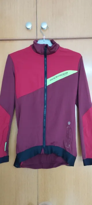 Maillot de ciclismo Rock Rider en talla S. Diseño moderno y funcional. - Tejido principal en color burdeos. - Paneles en color rojo. - Detalle de banda reflectante en amarillo neón. - Cuello alto con cremallera completa. - Puños y cintura elásticos. - Varios bolsillos con cremallera - Ideal para días fríos abriga bastante Puesto como mucho 4 veces lo vendo porque suelo usar la talla xs (cambiaría por algún maillot similar de la talla xs )