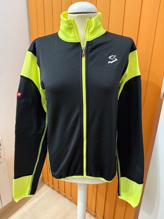Maillot de ciclismo Spiuk de manga larga en talla L. Diseño en color negro con detalles en amarillo flúor. - Cuello alto con cremallera. - Mangas y laterales en contraste. - Logo de Spiuk en el pecho.