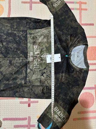 Maillot de ciclismo Bianchi Milano Tech Gravel de manga corta. - Diseño estampado en tonos verdes y negros. - Banda horizontal verde con logo Bianchi Milano. - Logo Bianchi en las mangas. Talla pequeño, como una L.