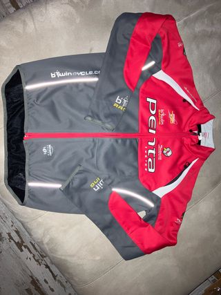 Maillot de ciclismo Btwin Racing Team. - Diseño en color negro con detalles grises en los hombros. - Logo de Btwin Racing Team en el pecho y en la manga izquierda. - Cremallera frontal completa. Maillot / chaqueta ciclismo de la marca Btwin. Solo la he usado una vez, esta nueva. Es muy calentita y cómoda.