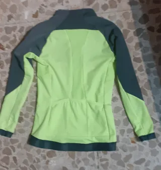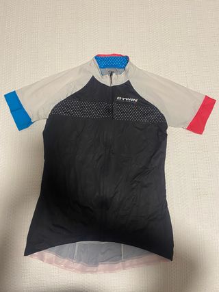 Maillot de ciclismo Btwin con diseño tricolor. Usado 1 vez. - Mangas largas. - Cremallera frontal completa. - Paneles laterales en contraste.
