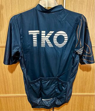 Maillot de ciclismo con diseño llamativo. -Talla M. - nuevo con etiquetas. - Mangas cortas. - Cremallera frontal. - Estampado TKO en blanco.