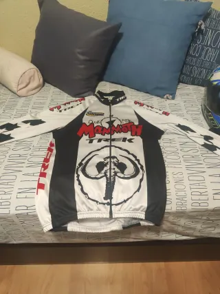 Maillot de ciclismo de entretiempo con diseño Mammoth y Trek. Ideal para tus salidas. - Mangas largas. - Cremallera frontal. - Estampado frontal con logo Mammoth y Trek. - Diseño en blanco, negro y rojo.