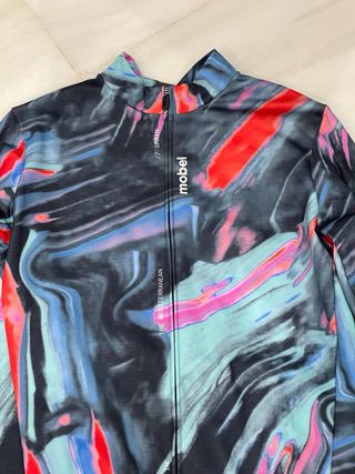 Maillot Mobel Play de manga larga, talla M. Diseño abstracto con colores vibrantes. - Cierre completo con cremallera. - Tejido técnico. - Fabricado en España.